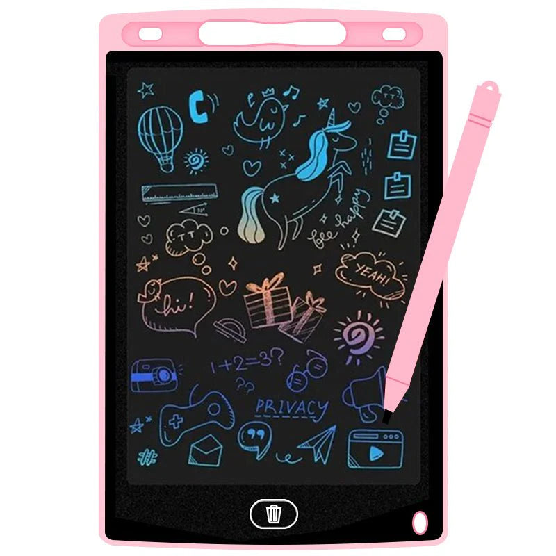 ¡La Pizarra Infantil Mágica Tablet LCD 10 Pulgadas ofrece una experiencia de dibujo divertida y sin desorden para los pequeños artistas!Características Principales:Pantalla LCD de 10 Pulgadas: Ofrece un área amplia para dibujar y escribir con facilidad.Material Duradero: Hecho de plástico resistente, ideal para el uso infantil.Funcionamiento con Pila CR2016: Incluye.Incluye Lápiz Táctil: Viene con un lápiz táctil para dibujar y escribir de manera precisa en la pantalla.Fondo Negro y Dibujo Multicolor: La pizarra tiene un fondo negro y al dibujar, los trazos aparecen en colores multicolor arcoíris, lo que le da un efecto visual atractivo.Beneficios y Uso:Creatividad Ilimitada: Los niños pueden dibujar, escribir y dejar volar su imaginación sin límites.Reutilizable: Puede ser utilizado una y otra vez, simplemente borrando el dibujo con un botón o deslizando para tener una pizarra limpia de nuevo.Portátil y Práctico: Ideal para llevar en viajes, restaurantes o cualquier lugar para mantener a los niños entretenidos.Sin Desorden: No requiere papel ni tinta, lo que significa cero desorden y fácil mantenimiento.Edad Recomendada:Es apropiada para niños pequeños y en edad escolar que disfruten dibujando y explorando su creatividad.Si necesitas más información o tienes otras preguntas, ¡estaré encantado de ayudarte!